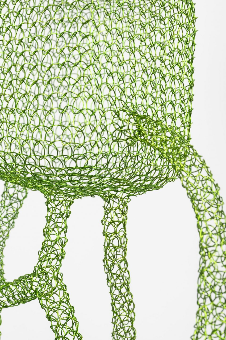 This is an airy sculpture made of hand-woven wire mesh, which can be either suspended in space or mounted on a wall.